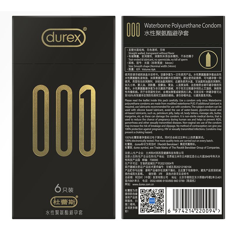 【避孕润滑】轻薄顺滑001(6只装)杜蕾斯